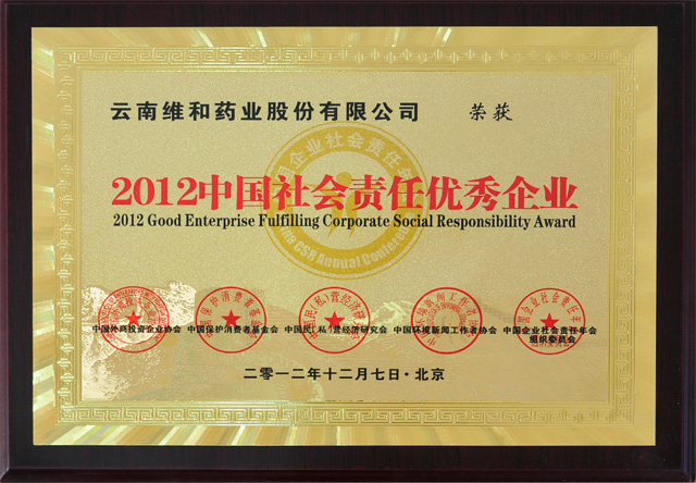 榮獲2012年中國社會責任優(yōu)秀企業(yè)