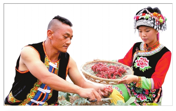 “無量三七與文山栽種的三七為同一物種,由于生長在這里的三七種質(zhì)資源保存完好,基因沒有退化,通過植物化學(xué)實驗比對,其皂苷含量較高,屬于優(yōu)質(zhì)三七藥材。”楊崇仁教授說,無量山東麓氣候溫和,雨量充沛,亞熱帶中山濕性常綠闊葉林森林植被發(fā)育良好,生態(tài)環(huán)境穩(wěn)定,山區(qū)局部小環(huán)境多樣,氣候環(huán)境適宜三七生長。無量山冬天寒冷,害蟲和病菌常常被凍死,而三七種子則在地里休眠;開春之后,三七苗破土而出,氣溫日漸炎熱,出土的三七苗不會被倒春寒凍壞。山區(qū)早晨有霧,比較濕潤,中午氣溫較高,但日照時間較短,太陽落山后,地氣上升,顯得比較潮濕,因此,在無量山種植三七不用澆水,不會受到旱災(zāi)的影響。