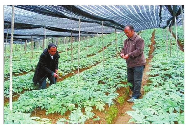 碧溪鄉(xiāng)杏子山村村民李德信種有4000多株三七。據(jù)介紹,李家世代都在同一塊地上種三七,未發(fā)現(xiàn)病蟲害,無連作障礙,不施化肥、農(nóng)藥,三七質(zhì)量優(yōu)異,產(chǎn)量也不低。楊教授將這4000多株三七作為種子,在無量山培植50畝種苗基地,為云南高品質(zhì)三七產(chǎn)業(yè)升級提供了優(yōu)質(zhì)種苗。