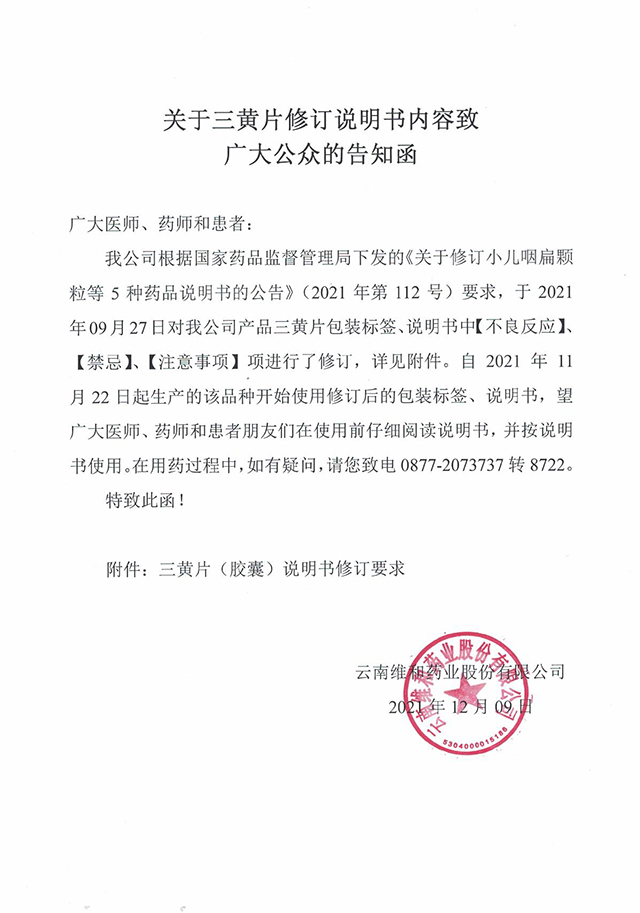 關于血塞通系列產品修訂說明書內容致廣大公...